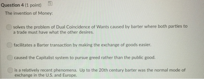 The invention of money supplemented the barter system by providing a nonperishable medium of exchange b. What best explains how the invention of money affected the barter system.