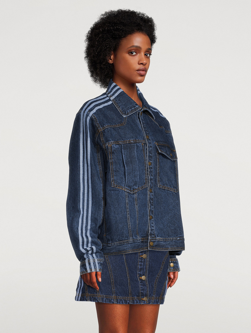 The yeehaw-themed range features classic denim jackets jeans. Along with denim pieces the upcoming collection also includes the debut of Adidas and Ivy Parks Super Super Sleek sneaker and a navy Ultraboost. Ivy Park x Adidas GENDER NEUTRAL Denim Jacket with classic 3 stripes on both sleeves.